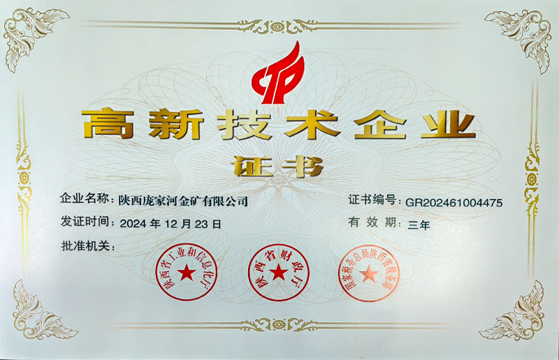 喜報(bào)!陜西龐家河金礦榮獲2024年度高新技術(shù)企業(yè)認(rèn)證